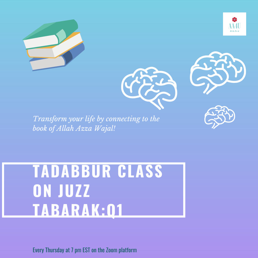 We have since included in our Al AN for U curriculum, Tadabbur classes of Juzz Amma and of Juzz Tabarak. Alhamdulillah the Tadabbur classes taught online by me, (Umm Yahya) and sister Joi Faison Saleem are available on our learning platform and any sister who is interested in Tadabbur can learn at her own pace. Click on the picture below to see the classes we offer.