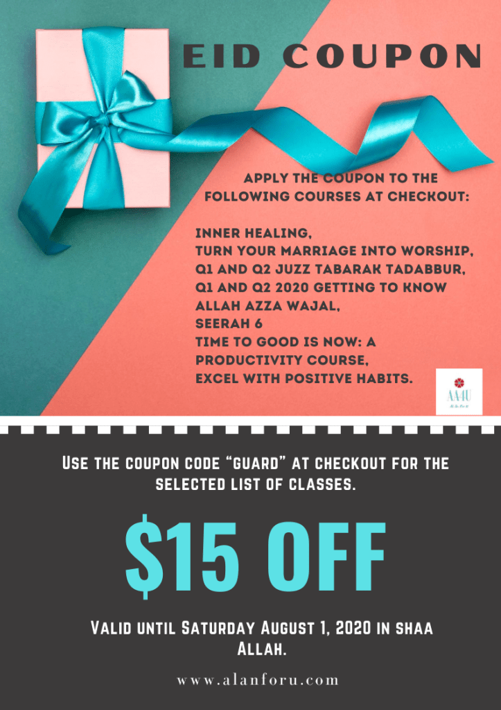 The reason, I want to share this additional course with you is because right now, it is part of a series of courses that are on sale for EID! There is a coupon code ‘guard’ which takes off $15 off the listed price. Use the code ‘guard’ at the checkout and start your journey right away!