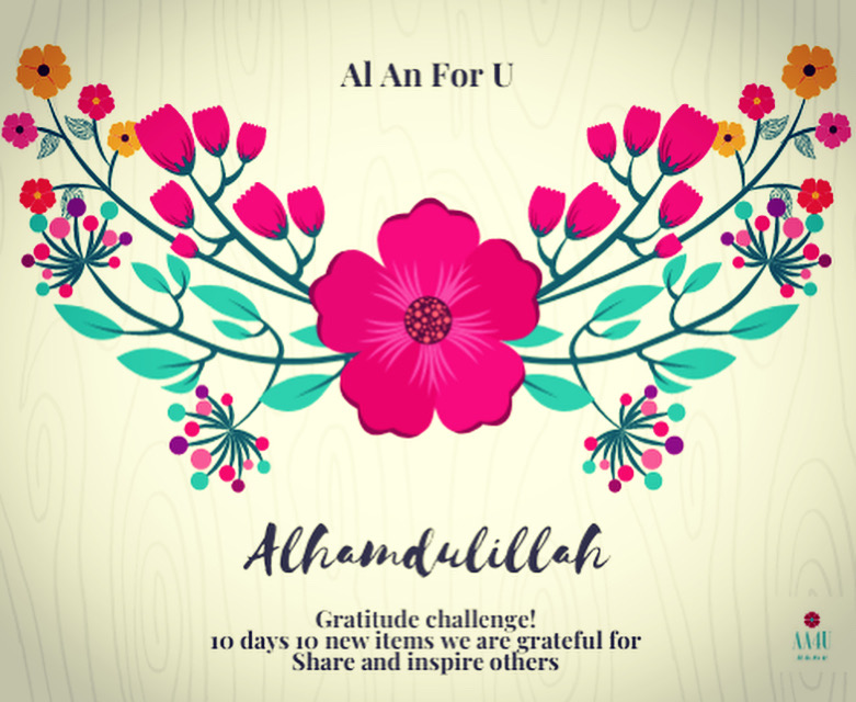 What I learned lately is that nothing on the outside needs to change for me to feel grateful. When I am intentional about focusing on the good and on the blessings and favors upon me, I naturally develop a sense of gratitude and feel better for it. Alhamdulillah. This is exactly what I have been doing these past ten days with a group of beautiful sisters. I hosted a 10 day gratitude challenge and it was an amazing experience maa shaa Allah.